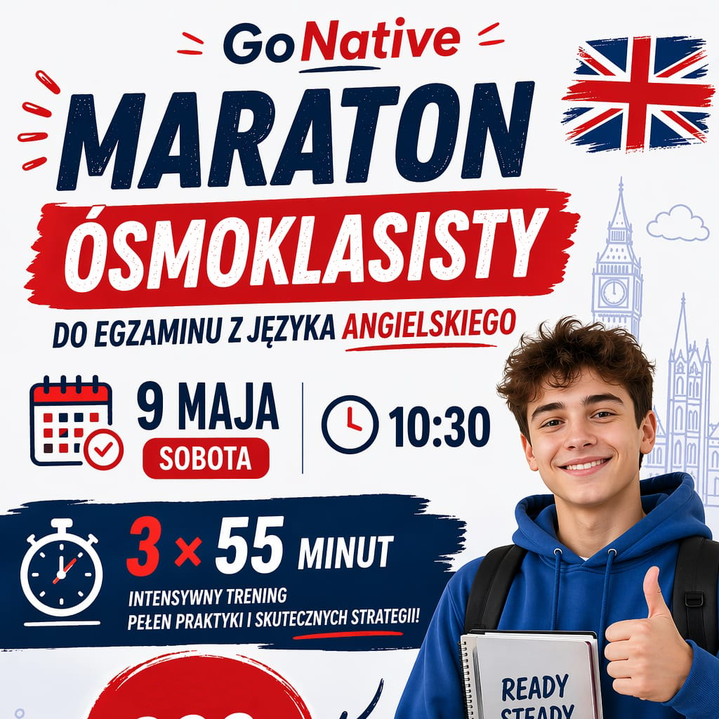 Maraton Ósmoklasisty do egzaminu z języka angielskiego! Intensywny trening pełen praktyki i skutecznych strategii. Zajęcia prowadzi wykwalifikowany, bardzo doświadczony nauczyciel.